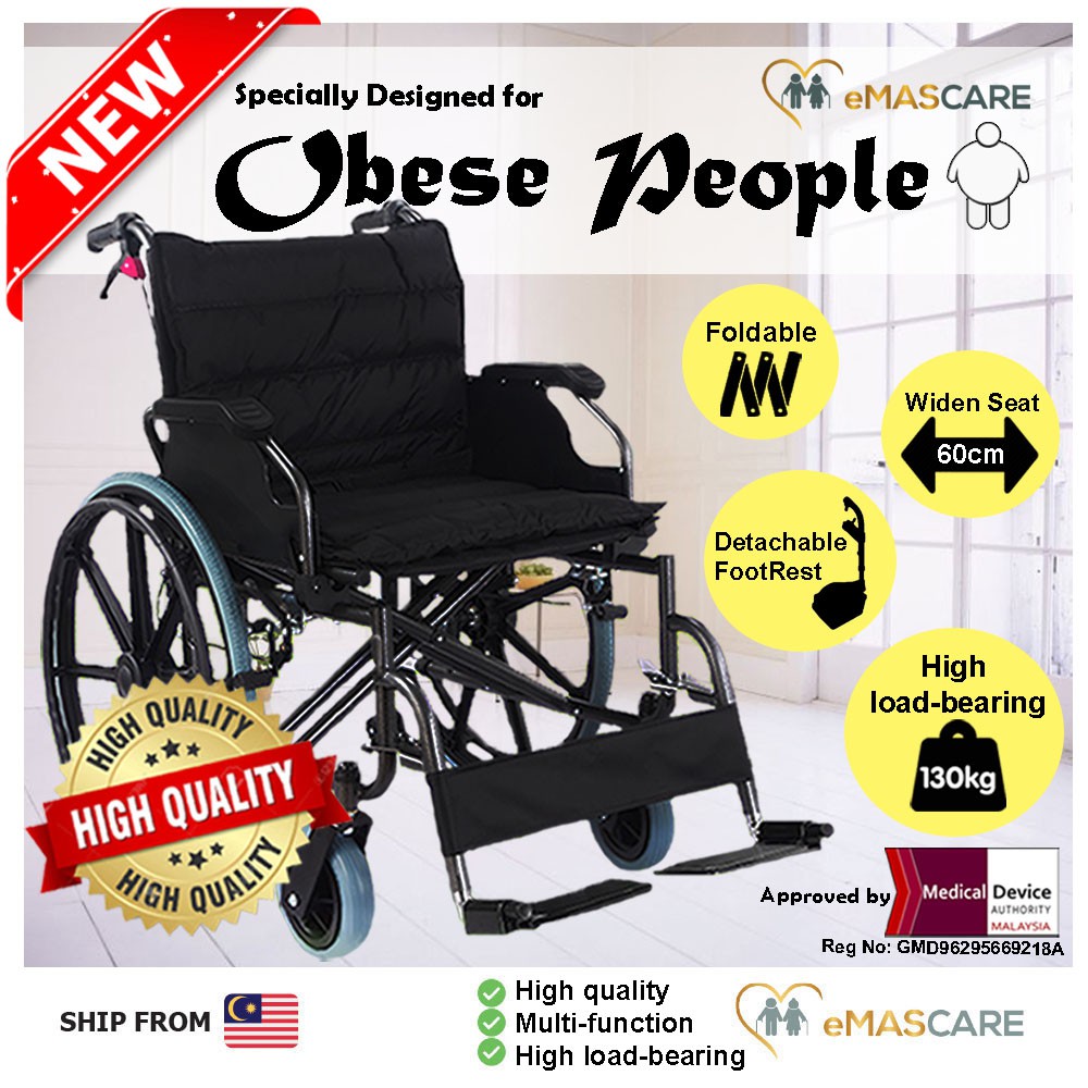 Heavy Duty Wheelchair Foldable Wheel Chair Wide Seat Big Size Extra Large Obese Fat Wheelchairs Kerusi Roda Badan Besar Shopee Malaysia